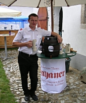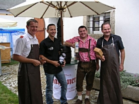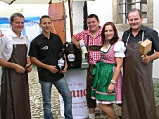Die Bäckerei Kasses überraschte mit einem Show-Backofen direkt auf der Hauptstraße. Im alten Vierkanter, Hauptstraße 35, gab's heuer schon zum dritten mal die Lammspezialitäten vom "Köck-Bauern". Und weil nur Essen und Trinken den Leib zusammen hält, gab's dazu das "Thayaner", ein Altbier, das erst dieses Jahr aus der Taufe gehoben wurde. Der Bieranstich wurde vom Bürgermeister (Ing. Eduard Köck) und dem FF Komandaten (Roman Bartl) bravourös gemeistert. Nach dem sehnlichst erwarteten „Ozapft is“, stellte sich das Thayaner gleich seiner Bewertung. Einhelliges Urteil: Sehr empfehlenswert. Prost!