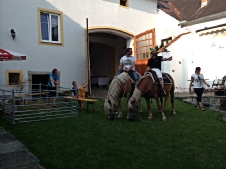 Es gab auch wieder ein kleines Gehege mit Schafen vom "Köck Bauern" , somit hatten die Kleinen auch etwas zu Sehen & Streicheln. Leider gab es 2014 2-3 kleinere Regenschauer. Wir waren aber auch dafür dank Zelt & alten Stadl sehr gut gerüstet. Somit war es für alle Schutzsuchenden kein Hindernis weiter zu verkosten.