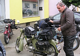 Der höchste Berg Österreichs ist der Großglockner (3798 m). Dieser liegt in den Hohen Tauern, einem der vielen beliebten Skigebiete in Österreich. Da die Alpen einen Großteil des österreichischen Staatsgebiets bedecken, nennt man das Land umgangssprachlich auch „die Alpenrepublik“. Und genau diesen Berg wollen wir mit den Puch´s erklimmen. Die Anfänge der Puch der späteren österreichischen "Hausmarke" reichen tief in die k.u.k.-Vergangenheit zurück. 1862 kommt Johann Puch zur Welt, 27 Jahre später legt er mit seinem genialen mechanischen Verständnis als Fahrradmechaniker den Grundstein für unsere Tour. 4 Männer ( Bundesrat & Bgm. Ing. Eduard Köck, Kurt Silberbauer, Manfred Russ & Ing. Christian Bayer ) stellen sich der Herausforderung und nehmen sich die Zeit, auf 887km Österreich (kleine Teile von Deutschland & Tschechien) von einer ganz anderen Seite zu sehen. Der Plan ist es die Tour in 4 Tagen zu schaffen. Die meisten Navigationssysteme meinen, daß diese Tour in ca 13h zu schaffen wäre, wir hoffen es ohne technische Probleme in der 4 fachen Zeit zu schaffen. Leider gibt es vor dem Start schon ein Opfer zu beklagen, eine der Puchs wird die Tour nicht antreten können. Alternativ wird ein nicht so ganz historisches Motorrad antreten. Für diese Challenge treten an: ( Bayer jun. , darf leider nicht mit ) | |||
