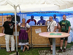 Die Bäckerei Kasses überraschte mit einem Show-Backofen direkt auf der Hauptstraße. Im alten Vierkanter, Hauptstraße 35, gab's heuer schon zum dritten mal die Lammspezialitäten vom "Köck-Bauern". Und weil nur Essen und Trinken den Leib zusammen hält, gab's dazu das "Thayaner", ein Altbier, das erst dieses Jahr aus der Taufe gehoben wurde. Der Bieranstich wurde vom Bürgermeister (Ing. Eduard Köck) und dem FF Komandaten (Roman Bartl) bravourös gemeistert. Nach dem sehnlichst erwarteten „Ozapft is“, stellte sich das Thayaner gleich seiner Bewertung. Einhelliges Urteil: Sehr empfehlenswert. Prost!