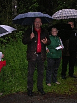 In der katholischen Kirche finden regelmäßig sogenannte Segnungsgottesdienste statt, in unserem Fall wurde dies mit einer Maiandacht kombiniert. Pfarrer Mag. Wolfgang Auhser hielt die Messe aus diesem speziellen Grund direkt vor dem "Bayerkreuz". Trotz regnerischem Wetters kamen viele Gläubige und waren bei dem Feldgottesdienst anwesend. Bei dem Gottesdienst waren auch einige Vertreter aus der Gemeinde anwesend, unter anderem der Kdt. der Freiwilligen Feuerwehr Oberedlitz Andreas Pany & Bundesrat und Bürgermeister Ing. Eduard Köck der Gemeinde Thaya. Zweiterer hielt auch eine kleine Rede. Nach der Rede wurde zu einer kleine Agape mit Thayarieden Wein und selbst gebackem Brot geladen | ![]() | Zitat aus der Rede des Bundesrats & Bgm. der Marktgemeinde Thaya Ing. Eduard Köck: Unsere Flurdenkmäler sind sowie unsere Kirchen und Kapellen Symbole unserer mehr als 1000 jährigen Kultur. Wenn wir sie schön erhalten, ist weithin sichtbar, dass diese Kultur aufrecht und aktiv ist. Somit müssen wir uns keine Sorgen machen, dass uns andere Kulturen, die zu uns kommen, einvernehmen. Deshalb danke ich der Familie Bayer für die Restauration des Bayerkreuzes, da dieses eines der 78 Flurdenkmäler in unserer Gemeinde ist und jetzt wieder für die nächsten Jahrzehnte gut hergerichtet ist. |