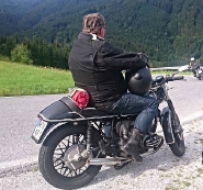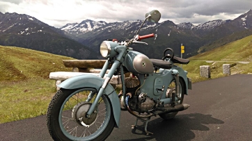 2016er wurden neu Hürden und Grenzen überwundenDie 4 Thayaner wussten 2016 schon auf was sie sich im Detail einlassenAus diesem Grund wurden gleich 2 Touren geplant und in Angriff genommen. Zum einen hieß das Ziel Gosau und zum anderen MotoGp in Spielberg. Beide Touren gewährten uns herrliche Einblicke in unser Land. Da wir im Waldviertel / Thayatal mit einem Mosaik aus unterschiedlichen Landschaften ( schroffe Felsen, traditionellem Ackerbau, Sumpfgebiete, Waldlandschaften, Teiche und Flüsse...) gesegnet sind, bietet unsere Gegend nicht nur Lebensraum für uns, sondern auch eine vielfältige Tier- und Pflanzenwelt. Umso schöner war es, zu sehen, dass sich Teile unserer regionalen Kultur auf der ganze Reise wiedergespiegelt haben. Bewusst bzw. unbewusst ist uns aber aufgefallen, dass jeder Berg, Pass oder jede Anhöhe auf der Tour erklommen wurde. Sölkpass (1790m), Koppenpass (690m). Erzberg (1466m), Gaberl/Stubalpe (1551m) und Nebelstein (höchste Punkt im Waldviertel ) waren hierbei eher die kleineren aber umso interessanteren "Hügl" die unsere Oldtimer erklimmen mussten. Eben um diese Naturschauspiele wieder aktiv wahrzunehmen, wurden 2016 zwei neue alte dafür restaurierte und sogar preisgekrönte (MRC Salzkammergut) Motorräder ins Rennen geschickt. Cafe Racer BMW R50 Bj:1974, schwarze Puch SG 250 Bj:1961, | |||