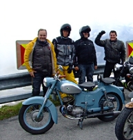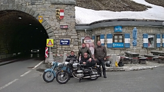 Der höchste Berg Österreichs ist der Großglockner (3798 m). Dieser liegt in den Hohen Tauern, einem der vielen beliebten Skigebiete in Österreich. Da die Alpen einen Großteil des österreichischen Staatsgebiets bedecken, nennt man das Land umgangssprachlich auch „die Alpenrepublik“. Und genau diesen Berg wollen wir mit den Puch´s erklimmen. Die Anfänge der Puch der späteren österreichischen "Hausmarke" reichen tief in die k.u.k.-Vergangenheit zurück. 1862 kommt Johann Puch zur Welt, 27 Jahre später legt er mit seinem genialen mechanischen Verständnis als Fahrradmechaniker den Grundstein für unsere Tour. 4 Männer ( Bundesrat & Bgm. Ing. Eduard Köck, Kurt Silberbauer, Manfred Russ & Ing. Christian Bayer ) stellen sich der Herausforderung und nehmen sich die Zeit, auf 887km Österreich (kleine Teile von Deutschland & Tschechien) von einer ganz anderen Seite zu sehen. Der Plan ist es die Tour in 4 Tagen zu schaffen. Die meisten Navigationssysteme meinen, daß diese Tour in ca 13h zu schaffen wäre, wir hoffen es ohne technische Probleme in der 4 fachen Zeit zu schaffen. Leider gibt es vor dem Start schon ein Opfer zu beklagen, eine der Puchs wird die Tour nicht antreten können. Alternativ wird ein nicht so ganz historisches Motorrad antreten. Für diese Challenge treten an: ( Bayer jun. , darf leider nicht mit ) | |||
